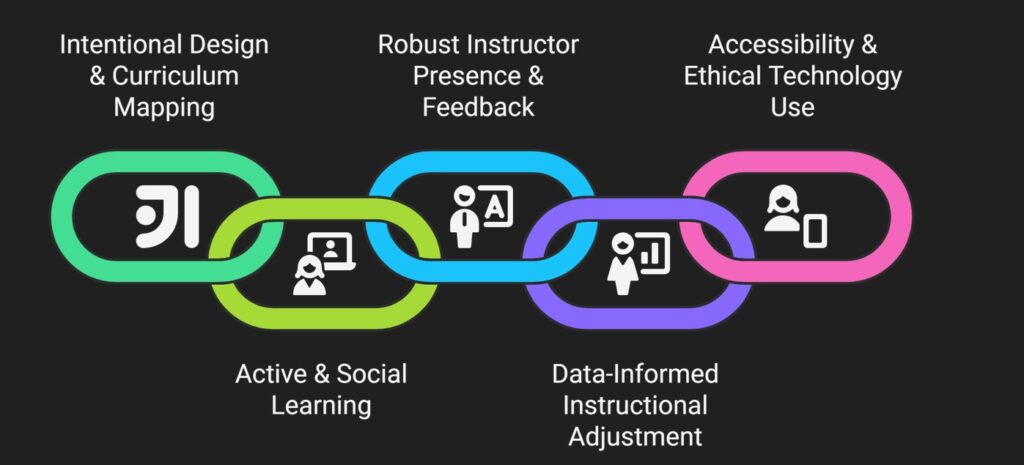 The Principle: In a digital environment, “out of sight” cannot mean “out of mind.” A strong and consistent instructor presence is the single most critical factor in reducing dropout rates and building a community of trust.